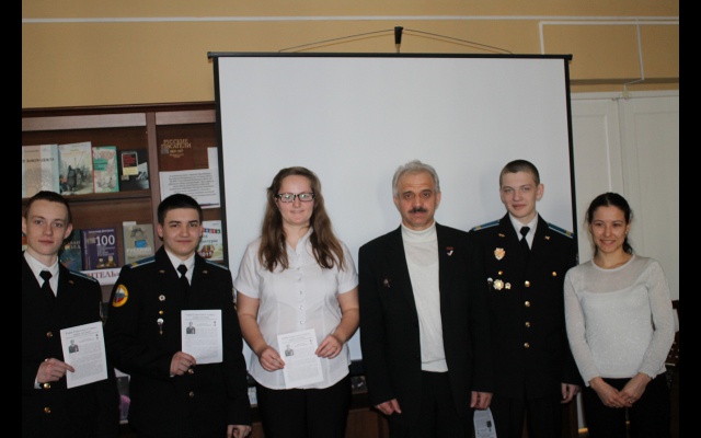 Во встрече с читателями приняли участие два боевых офицера: Фёдор Юрин, председатель Совета регионального отделения Партии "РОДИНА" в Челябинской области, участник войны в Афганистане, кавалер ордена Красной Звезды, подполковник запаса ФСБ и Айвен Сиразитдинов, военный летчик и автор документальных повестей о наших земляках, героях Советского Союза Востротине Валерии Александровиче и Буркове Валерии Анатольевиче. Их рассказ с большим вниманием прослушали учащиеся Челябинской школы-интерната с начальной летной подготовкой и студентки Челябинского базового медицинского колледжа.